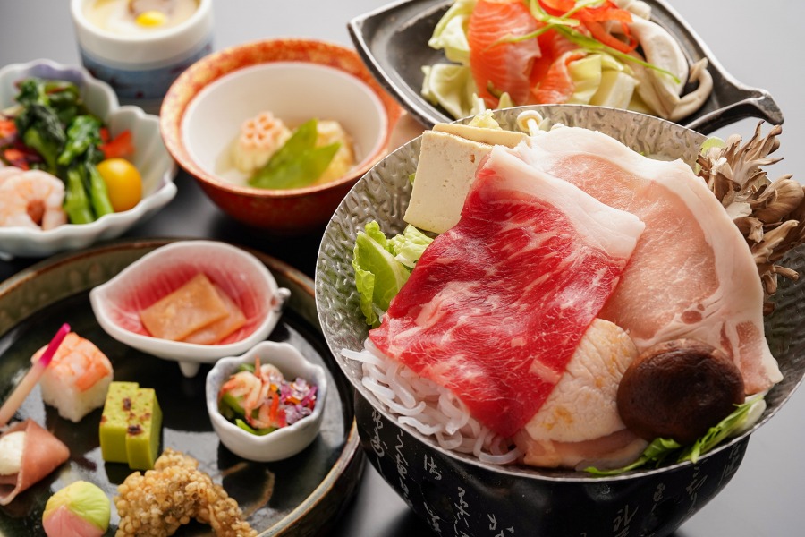 天坊名物「上州すき焼き鍋」や地元の食材をはじめ、